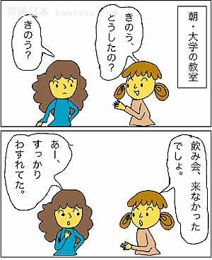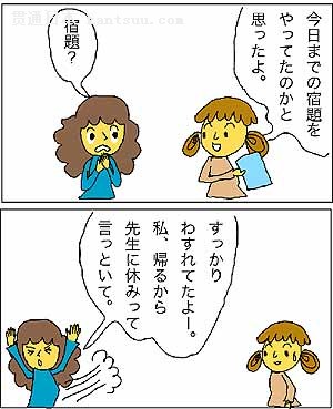 一、课程计划 地点:大学(だいがく) 场景:忘れた。 掌握词条:すっかり 二、では、始まりますよう! 下面,请大家看一下本期的图片,注意图片中出现的拟声词和拟态词哦。最好认真地把词汇分分类,哪些是已经掌握的,哪些是含糊不清的,哪些是根本不会的,一会学习起来就可以有的放矢啦,O(∩_∩)O哈哈~