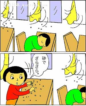 一、课程计划 地点:大学(だいがく) 场景:風の強い日。 掌握词条:ざらざら 二、では、始まりますよう! 下面,请大家看一下本期的图片,注意图片中出现的拟声词和拟态词哦。最好认真地把词汇分分类,哪些是已经掌握的,哪些是含糊不清的,哪些是根本不会的,一会学习起来就可以有的放矢啦,O(∩_∩)O哈哈~