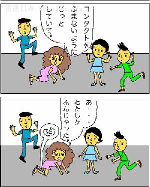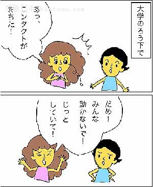 一、课程计划 地点:大学(だいがく) 场景:私のコンタクトレンズ!! 掌握词条:じっと 二、では、始まりますよう! 下面,请大家看一下本期的图片,注意图片中出现的拟声词和拟态词哦。最好认真地把词汇分分类,哪些是已经掌握的,哪些是含糊不清的,哪些是根本不会的,一会学习起来就可以有的放矢啦,O(∩_∩)O哈哈~