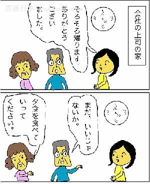 一、课程计划 地点:会社の上司の家(かいしゃのじょうしのいえ) 场景:とまっちゃおうかな。 掌握词条: そろそろ 二、では、始まりますよう! 下面,请大家看一下本期的图片,注意图片中出现的拟声词和拟态词哦。最好认真地把词汇分分类,哪些是已经掌握的,哪些是含糊不清的,哪些是根本不会的,一会学习起来就可以有的放矢啦,O(∩_∩)O哈哈~