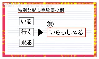 尊敬语的三种形式及用法区分 我们都知道尊敬语有三种形式: 1、与被动语态一样的形式,如行かれる、食べられる等; 2、お+动词连用形+になります; 3、如下图所示的特殊形式敬语,如いる、行く、来る的尊敬语都是いらっしゃる。