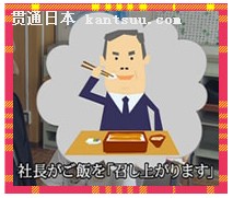 举一个描述公司不同职位的人吃饭的例子,同样都是讲吃饭,不过对于不同职位等级的人就会有不同的说法: 社長がご飯を召し上がります。(召し上がる是食べる的特殊形式敬语)